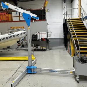 Reid Porta Davit System for hire with 250 kg man-riding and 500 kg goods lifting capacity. Tow-bar mounted or free-standing weighted configuration. Ideal for confined space access, rescue and temporary lifting operations.