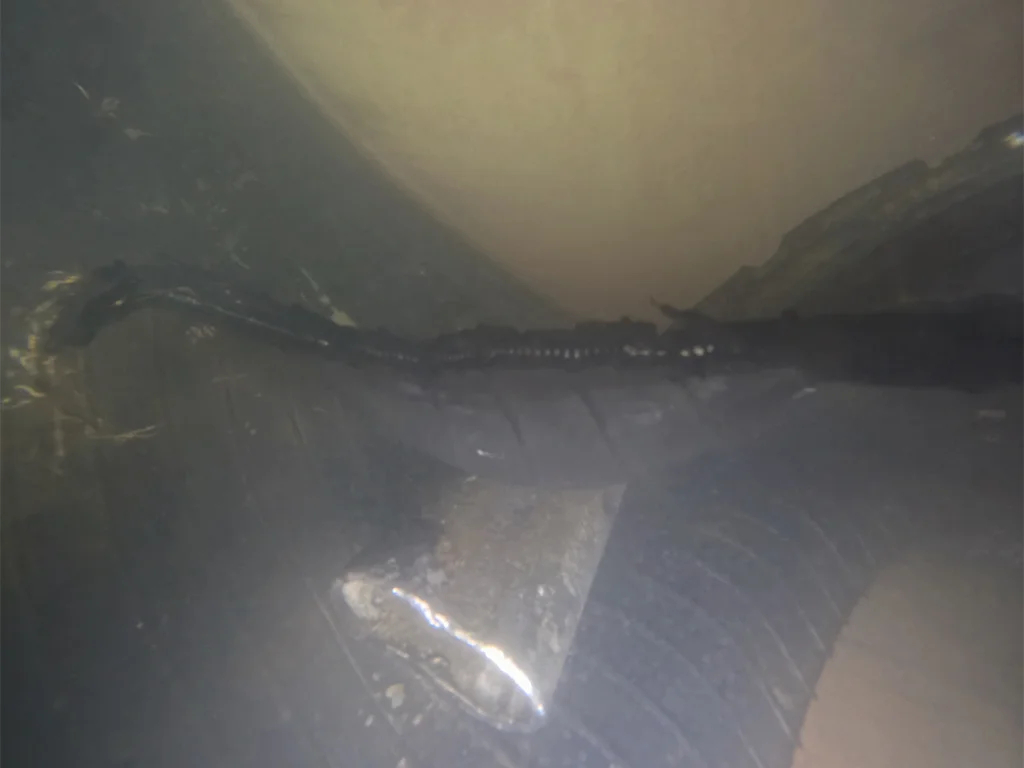 The challenge was immediately apparent as the team realised the tyre wasn’t just caught—it was twisted, doubled over, and firmly lodged in place. Seatech, with over 25 years of experience in removing such debris, was prepared for a difficult task. But this was no ordinary recovery.